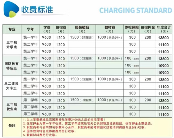1、年制升學班、國防教育特色班、中職班報名時需繳納500元報名費,此費用入學后直接轉為教材費。