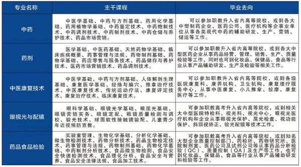 就業:學校有健全的就業指導體系,與市內外近百家醫藥企業建立了良好的合作關系,就業渠道穩定,畢業生供不應求。主要就業企業有山東海王銀河醫藥、國藥控股等五十多家大型醫藥企業、康養中心,從事藥品經營、管理、銷售、檢驗或從事小兒推拿、按摩、康復醫療、視力保健、驗光配鏡等工作。