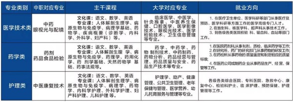 學校積極響應國家職教政策,開設“職教高考班”。經山東省教育廳批準,與濰坊護理職業學院、濰坊工商職業學院聯合舉辦“三二連讀”大專班,開設中藥學、藥學、中醫養生保健專業,進一步提升了學校的辦學層次。學校中藥專業被評為濰坊市中等職業教育品牌專業、藥劑專業被評為濰坊市中等職業教育高水平專業。