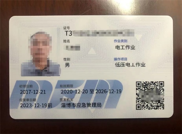 | 特種作業操作證 | 電工證(低壓/高壓) | 國家應急管理局(淄博市應急管理局頒發) | 2寸白底彩照1張,身份證正反面彩色復印件1張,學歷證書彩色復印件1張(沒有學歷證用戶口本本人頁代替一下) |