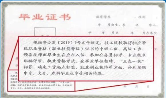 6、根據國家政策,成績合格者發給山東省人力資源和社會保障廳驗印的“技師學院畢業證書”;參加國家職業資格或技能等級考核合格,獲得人社部門頒發的相關專業的《職業資格證書》或《技能等級證書》。自愿上大專,能拿三個證書(考核合格可獲得技師學院畢業證書、職業資格證書、學歷證書);學生可自愿選學第二專業工種,學院免費進行創業培訓教育,使學生增加創業知識,提高創業能力。