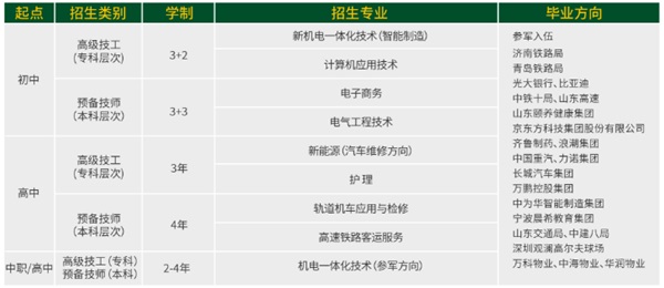 中級技工(中專層次):招收初中畢業生,學制3年;高中畢業生學制2年。